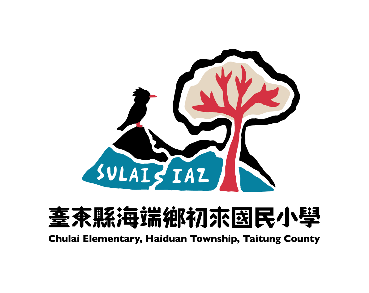 【圖13】初來國小新校徽。以海端視角的玉山、火炬狀的雀榕(初來(Sulai-iaz)的原意)、布農族聖鳥紅嘴黑鵯為主體。從玉山蜿蜒而下的三條河流匯集於山麓,象徵新武分校。布農傳說故事中,紅嘴黑鵯為陷入大洪水災難中的布農族人銜火種,讓族人生命得以延續。牠用智慧守護著雀榕,讓文化的火種得以生生不息。(納式設計,初來國小提供,2024年)