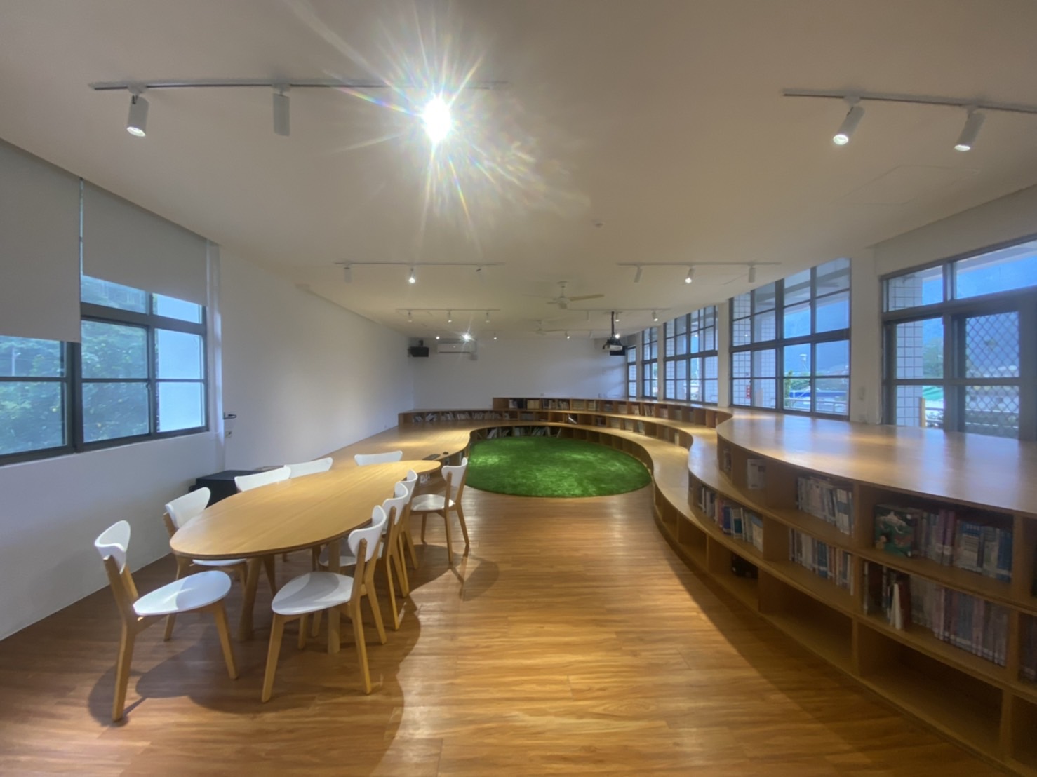 【圖6】初來國小新圖書室,新設階梯狀書櫃具有山脈意象。(初來國小提供,2021年)