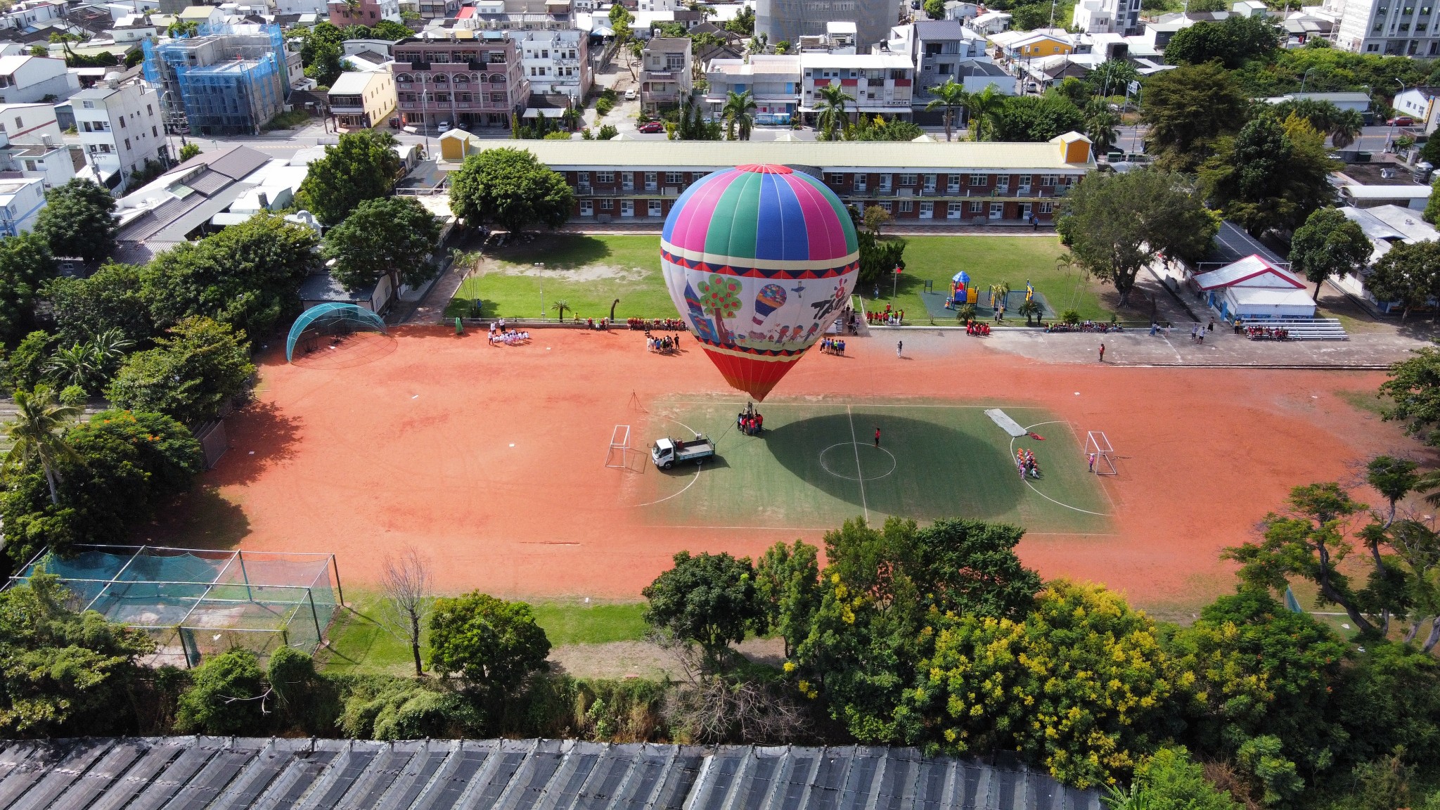 【圖3】2022年(民國111年)辦理熱氣球體驗活動,豐田國小校園空拍圖。(豐田國小提供)
