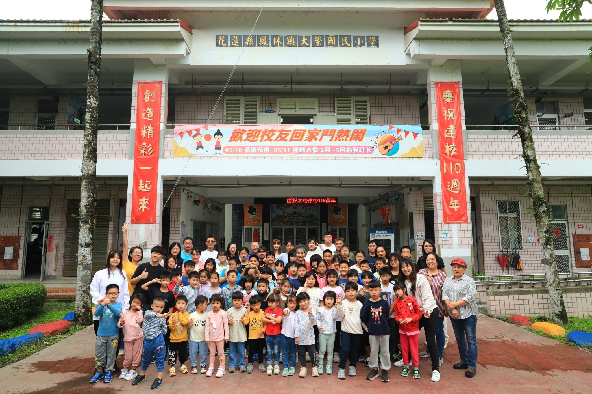 【圖12】大榮國小慶祝建校110年,校慶前夕全校師生合影。(黃梨君拍攝,2024年)
