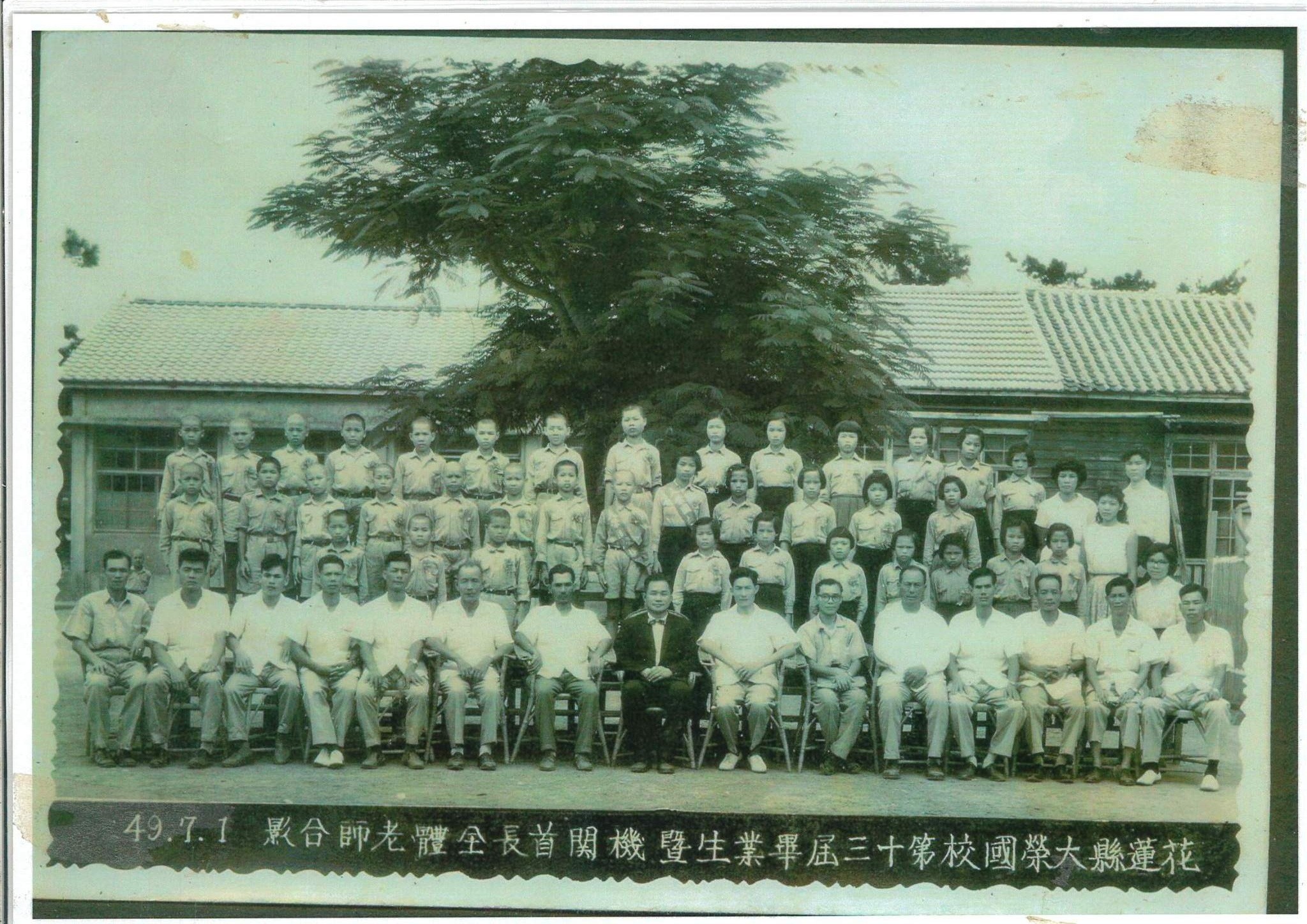 【圖2】大榮國小第三十屆畢業照,校舍為磚瓦木造房。(大榮國小提供,1960年)