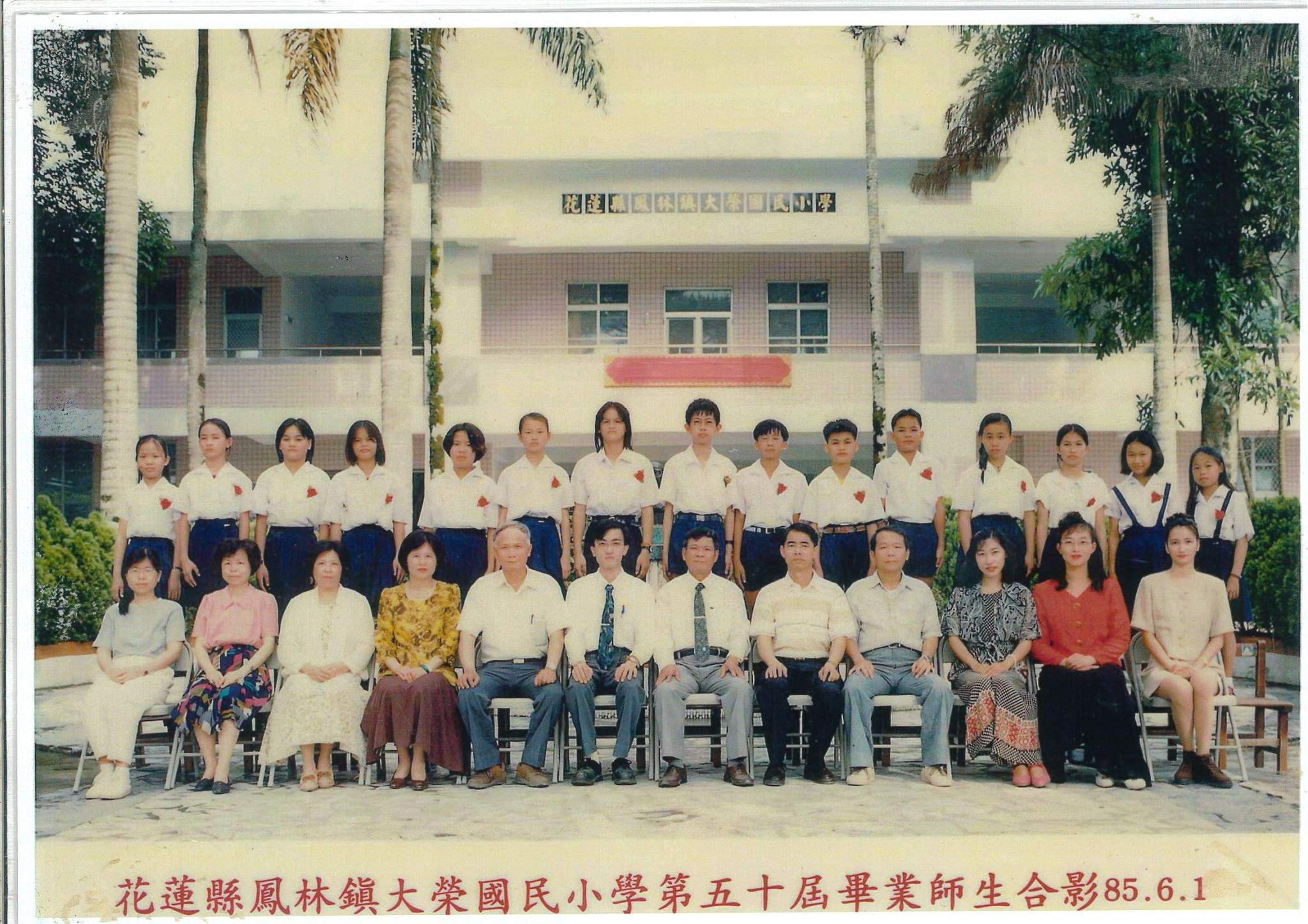 【圖5】大榮國小第五十屆畢業照,校舍為二樓鋼筋水泥樓房。(大榮國小提供,1996年)