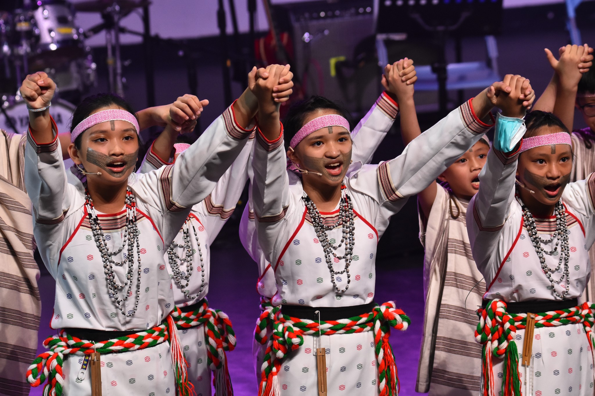 【圖5】景美國小傳統歌謠隊表演。(陳立輝拍攝,景美國小提供,花蓮縣文化局演藝廳,2021年)