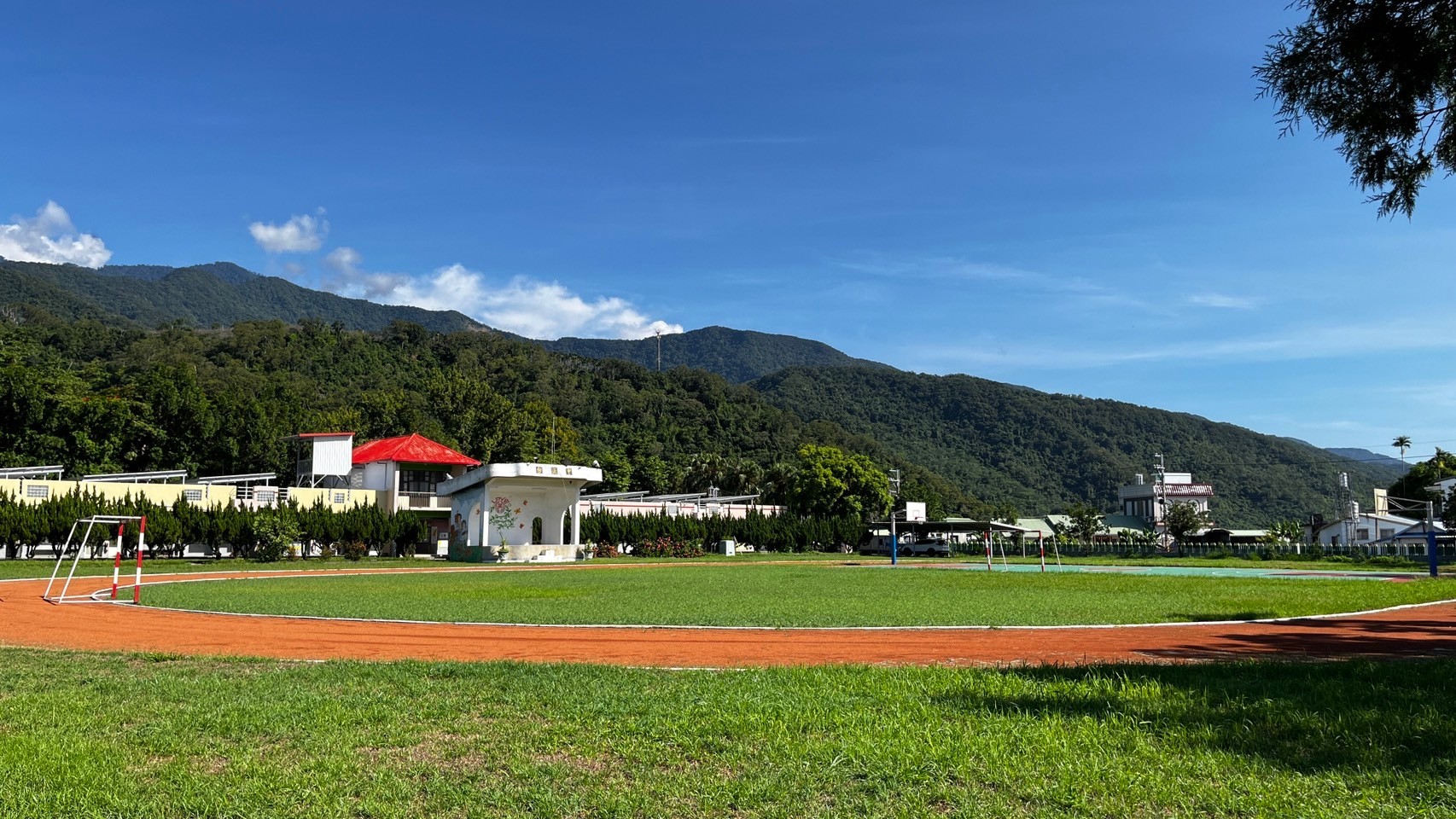 【圖2】學田國小操場,背靠中央山脈馬里望山。(曾啟銘提供)