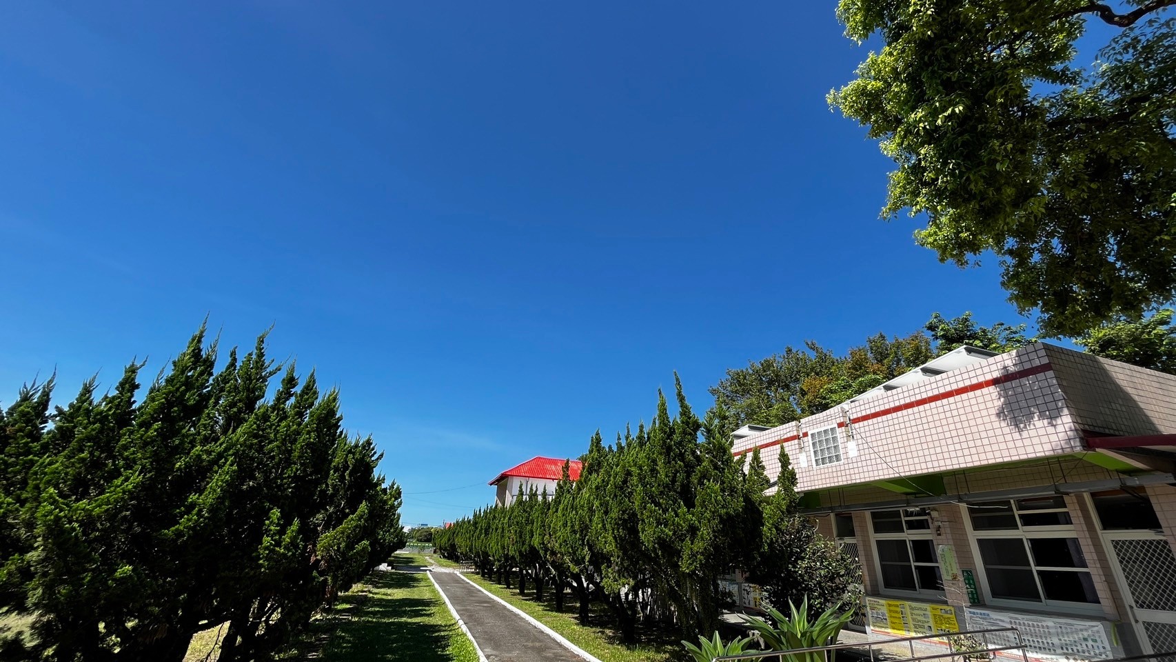 【圖6】教學大樓西側,龍柏步道。(曾啟銘提供)