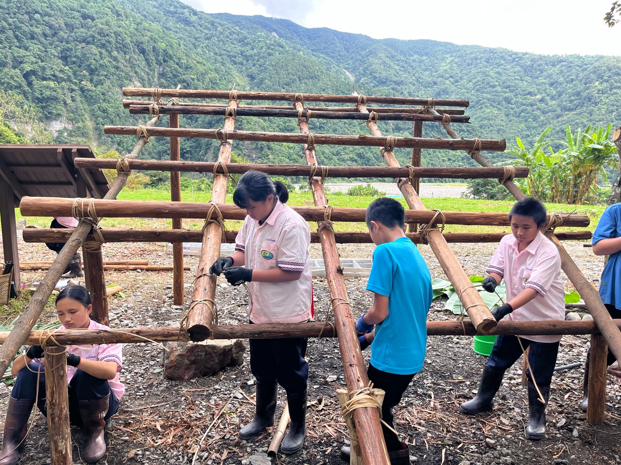 【圖12】民族教育課程-合作搭建工寮。(大同國中提供)