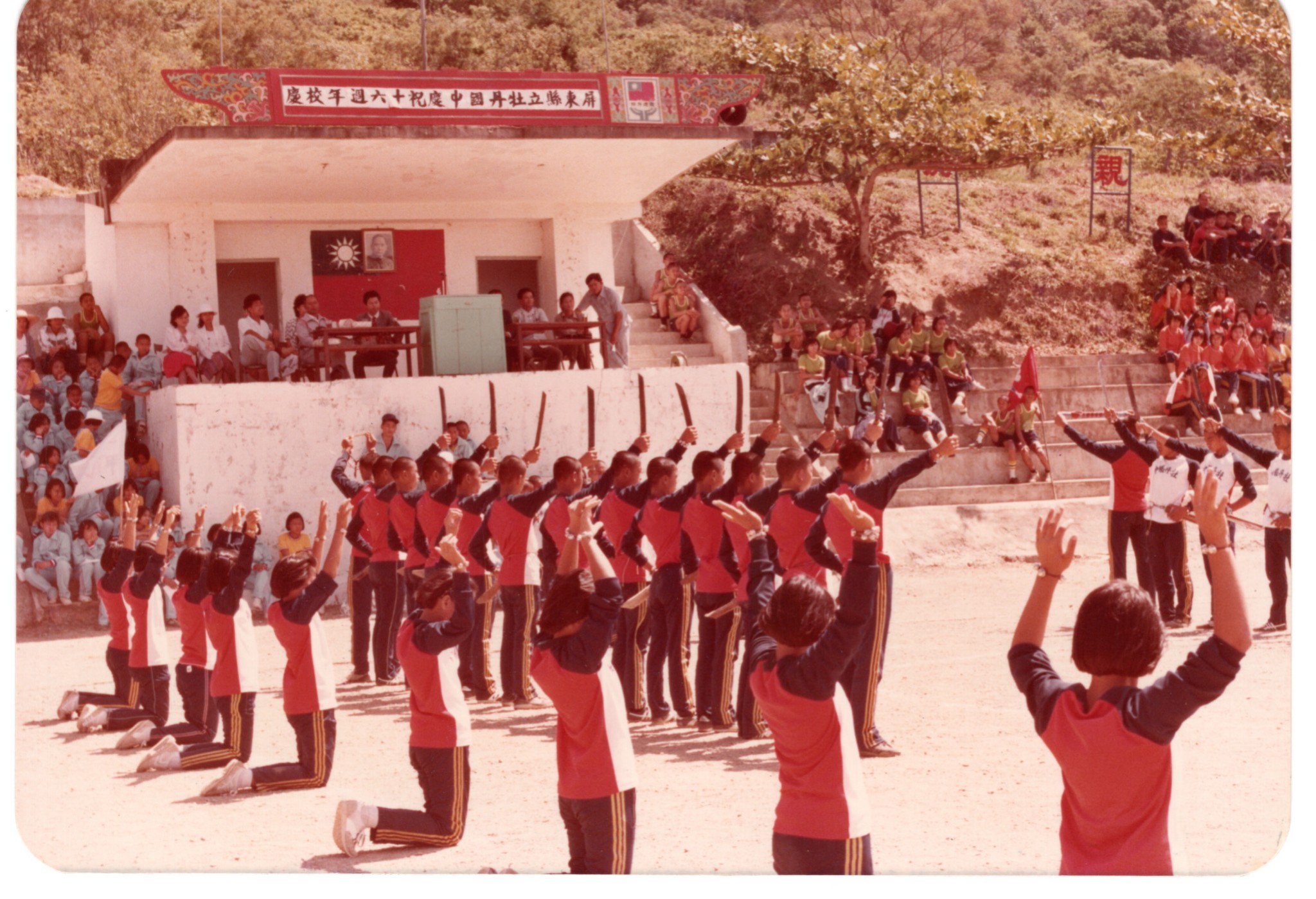 【圖3】牡丹國中慶祝雙十國慶大會。(牡丹國中提供,校門,1976年)